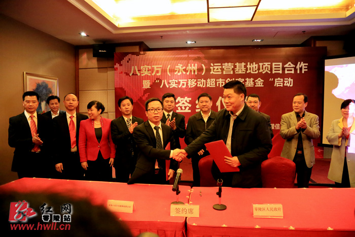 红网零陵站12月15日讯(分站记者 陈斌 陈瑶)12月11日下午,零陵区与八实万(永州)运营基地项目合作暨“八实万移动超市创客基金”启动仪式在深圳举行。区委书记严兴德出席仪式并致辞,区委副书记、区长唐烨主持签约仪式。区委常委、区委办主任彭江辉,副区长姚如男、唐会国,区政协副主席、区工商联主席蒋晓娟参加。前海八实万互联网有限公司是一家由国家工商总局批准成立的“互联网+”创新型科技企业,致力于打造原生态互联网,坚持“创新、协调、绿色、开放、共享”的五大发展理念,实现互融、互通、互联,解决经济发展转型过程中传统产业和实体店生意升级问题。运营基地坐落于永州零陵工业园区,面积3600平方,是该公司在湖南设立的第一个市级运营基地,也是公司第一期计划投资10亿元在全国设立20个运营基地之一,功能为商品展示、仓储配送、创客培训、门店管理、财务核算等,项目的签约标志着零陵人民将拥有自己的专属“移动超市”。