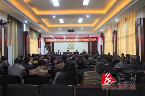 红网双牌站12月15日讯(通讯员 何恒)12月14日,双牌县基层干部损害群众利益问题的专项整治工作会议召开,会议传达贯彻了12月12日东安会议精神,对全县专项整治工作作进一步安排部署。湖南省委巡视第七组组长郭树人,县领导苏小康、李瑛、李群辉、秦小国出席会议。会议由双牌县委书记苏小康主持。会上,就全县整治工作的开展,郭树人强调,一定要通过这次整治工作来唤醒干部的党章意识,党的纪律意识,增强党干部的严格自律意识。这次巡视工作围绕6大纪律开展巡视,要用党规党纪这把尺子来衡量各级部门的工作,衡量县委的工作。同时,鼓励各级干部如有不规范行为,要及时自查自纠,扫除干部队伍中的歪风斜气,树立清风正气。