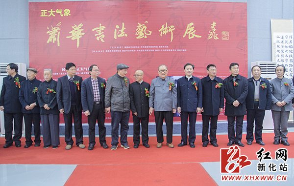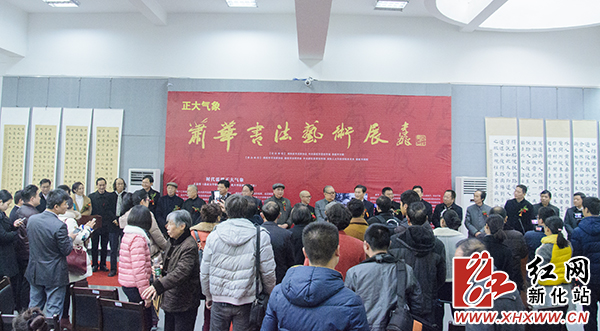 红网新化站12月15日讯(分站记者 李伊超)由湖南省书法家协会、娄底市委宣传部等单位共同主办,娄底市书法家协会、新化县委宣传部等单位协办的“正大气象·萧华书法艺术展”12月12日在娄底书画院开幕,展期为4天,共展出新化著名书法家萧华的100余件作品,这也是萧华第一次回乡办展。当天,广州军区原副司令员、中将龚谷成,湖南省委宣传部副部长孔和平、省发改委副主任陈永实、省司法厅副厅长刘道龙、省军区原副司令员肖求如,娄底市人大常委会主任易春阳、市政协主席姚兵、市委常委、宣传部长伍美华,新化县领导胡忠威、邓光吕、李劲柳、杨韶红、李南新及当代著名工笔画家邹传安、省书法家协会副主席刘广文等出席开幕式。