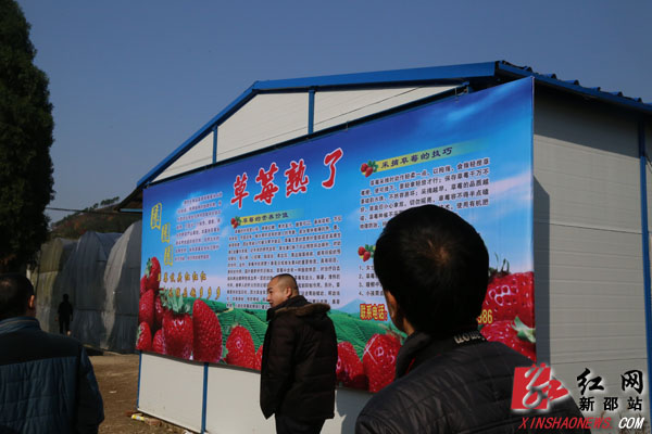走过富硒草莓园的广告牌,就可以进入大棚采摘