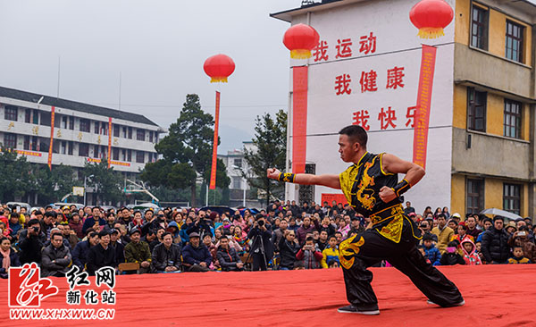 40余名武术大师分别表演了板凳拳,南拳、太极拳等梅山武术