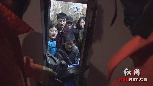 根据现场实际情况,救援官兵首先利用撬棍,将电梯门撬开一道缝隙,随后使用液压扩张器,对电梯门进行扩张,扩大救援空间,营救被困群众。经过3分钟的紧张操作,电梯门终于被打开。随后,一名救援官兵利用液压扩展器顶住电梯门,防止电梯门夹伤被困人员,另一名救援官兵负责从电梯里将被困人员一个个接出来。在救援官兵的协助下,一名老人和3名小孩首先被营救出来。随后,其他被困人员一个个被救了出来。