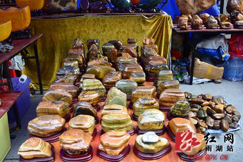 红网雨湖站12月22日讯(分站实习生 聂颖)12月18日,首届奇石玉器陶瓷古玩收藏博览会在白石古玩街拉开帷幕。来自全国各地近200多家商家齐聚一堂,带来了3万多件参展精品,展会一落展便吸引了周边市民的驻足围观。本次活动举办时间为12月18日至12月26日,主要有来自安徽的灵璧玉、山东的奇石、福建的寿山石、新疆的田玉、缅甸的翡翠、广西的大化石、云南的黄龙玉、南红景德镇的陶瓷等。