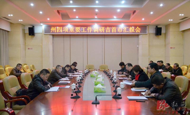 红网吉首站12月22日讯(分站记者 汤舒丹)12月21日,湘西州调研组一行来到吉首市,就生态文化旅游业发展、新型城镇化、现代农业及精准扶贫、新型工业化(信息化)四项重要工作开展调研并听取汇报。市领导刘家富、龚迎春、石阳清等参加会议。近年来,吉首市按照省委、州委经济工作会的要求,抢抓武陵山片区试点等重大机遇,大力实施“项目兴市、改革兴市、实干兴市”。先后荣获中国最具价值文化(遗产)旅游目的地城市、全国首批创建生态文明典范城市、湖南省旅游产业发展十佳县(市、区)等称号。累积引进资金10多亿元,宗南重工、湘西资源、木本世家、汇锋高新能源等一批企业先后投产。