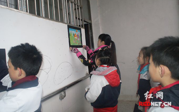 湘乡市教师进修学校附属小学的负责人说,为了给特殊学校的孩子准备一份精美的新年礼物,在两个星期前,孩子们就用画笔画出很多“关于爱”的图片。当天上午,这些图画作品就张贴在了特殊教育学校的墙壁上,把他们的墙壁打扮得漂漂亮亮、喜气洋洋。