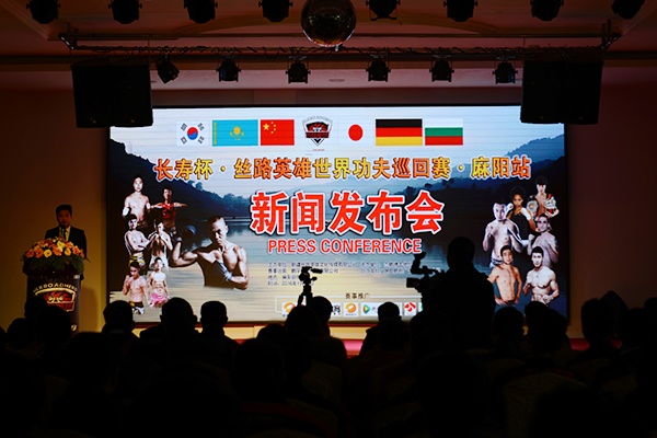 红网麻阳站12月28日讯(通讯员 陈建武 张祥雄 张杰)12月28日,中国麻阳“长寿杯”丝路英雄·锦江之夜世界功夫巡回赛新闻发布会在麻阳县锦江宾馆举行。麻阳县委常委、宣传部长鲁鸿,“湘西钻山豹”世界拳王周志鹏,丝路英雄赛事总监蔡飞出席发布会。2016年1月16日至17日,中国麻阳“长寿杯”丝路英雄世界功夫巡回赛将在麻阳县体育馆进行,“湘西钻山豹”周志鹏将携丝路英雄超级战队迎战哈萨克斯坦、日本、德国、保加利亚、韩国等多国顶级高手。