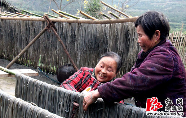 红网保靖站1月4日讯(通讯员 俞采华 陈亚平)1月4日,保靖县比耳镇糯里村的村民正忙着晾晒用传统手工制作红薯粉条。千百年来,湘西民间一直盛行手工制作红薯粉的传统工艺。时下正值冬闲时节,比耳镇村民利用自己种植的红薯手工制作了红薯粉,不仅使这即将消失的传统手工艺得到传承,还为山区农民拓宽了增收致富的渠道。
