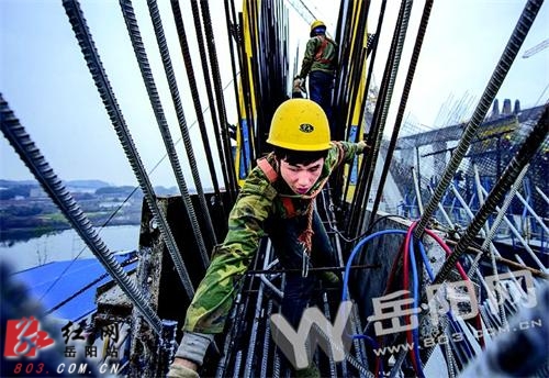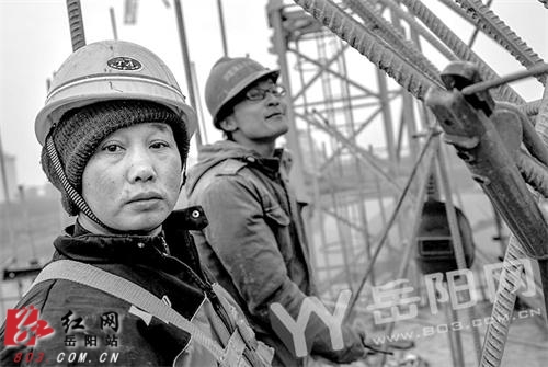 红网岳阳站1月4日讯(分站记者 岳文)大岳高速洞庭湖大桥,是世界第二、国内第一大跨径钢桁加劲梁悬索桥,也是目前湖南最高的桥。它东起岳阳,西接君山,跨越湘江河道,全长2390米,东西两座索塔分别高203米,206米,主跨跨径1480米,比著名的矮寨大桥还长304米,在世界同类特大桥梁内综合排名前十位。岳阳市七里山建筑工地,由湖南路桥承建的土建工程A1标段,在2016年元旦这天,500名桥梁建设者,放弃休息时间,仍然辛勤工作在各自的岗位上,这支从矮寨大桥、荆岳长江大桥等工地转战而来的团队,在技术、设备、管理上以严谨、科学著名,在中国打出了“路桥湘军”品牌。他们说,要给岳阳人民建造一座能够称为世界级精品的悬索桥,要为岳阳人民留下一个最高的城市地标。