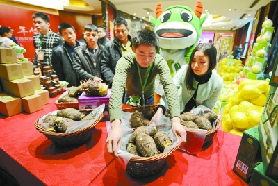 1月7日,市民在选购香芋。当天,江永县人民政府主办的“互联网+年货”江永香货首发仪式在长沙举行。