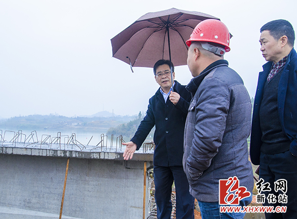 红网新化站1月10日讯(分站记者 李伊超)1月8日,小寒时节,湖南省新化县委书记胡忠威轻车简行,冒雨督查白沙洲西路、资江三桥和河西沿河公路项目建设。胡忠威强调,相关部门和施工单位要加强管理、科学调度、加快施工、保证质量,确保节日期间群众出行安全便捷,过一个舒心祥和的春节。县委常委、县委办主任杨韶红,县委办副主任、县督查室主任曾平楚陪同。
