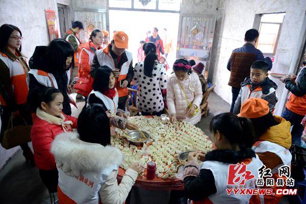 微水一家亲,为了给小易娟乔迁新家增添热闹的气氛,微水志愿者一早购买了肉、鱼、饺子皮等食材、餐具,大家齐动手做一顿丰富的午餐庆贺。活动现场,志愿者们贴对联、包饺子、煮饭、烧火、炒菜等,忙得不亦乐乎,欢笑声洒满了整个爱心屋。