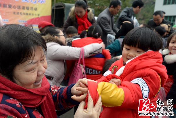 爱心人士帮孩子们穿上新衣服 张承印 摄