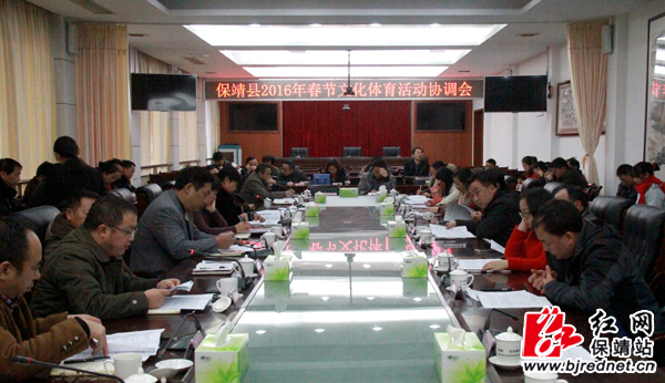 红网保靖站1月14日讯(分站记者 彭伟)1月12日,保靖县2016年春节文化体育活动协调会召开。县委常委、县委宣传部长尹海霞出席会议,县委办、县委宣传部、县民宗旅文广新局、县教体局、县文联、县安监局、县老干局等各相关单位负责人参加会议。会议由县政协副主席龚曼华主持。会议宣读了《保靖县2016年春节文化体育活动实施方案》,并就2016年春节文化体育活动等相关工作进行了讨论和布置。