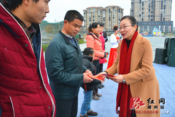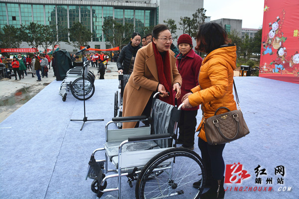 红网靖州站1月18日讯(分站记者 陈俊名)1月17日上午,“我们的中国梦2016”送理论政策、送文化、送科技、送卫生、送法律五下乡迎春慰问活动在靖州飞山民族文化广场拉开序幕。启动仪式上,县委常委、宣传部长戈承艳,副县长邓利芳现场为部分困难残疾人代表送上爱心轮椅、爱心红包,以及美好的祝福。