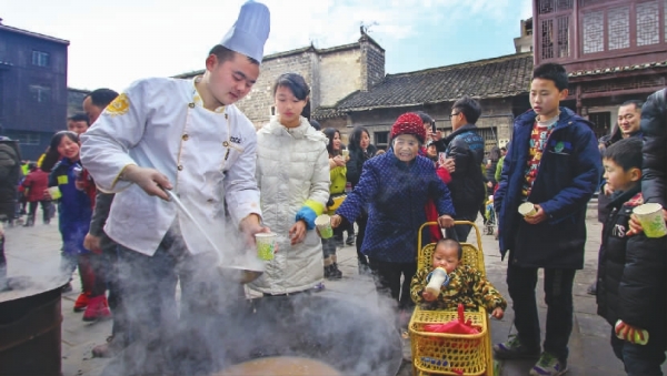 时刻新闻 —分享— 1月17日,农历腊月初八,泸溪县浦市古镇隆重举办了富有民族特色的“腊八节”活动。当地及周边邻县前来看热闹的群众10000多人把古镇大街小巷挤得满满的。人们饱览“舞龙灯、辰河戏剧”等地方特色戏剧表演外,还免费品尝了当地富有民族特色的“腊八粥、腊八豆”等美食。向晓玲 张克宁 摄影报道 来源:三湘都市报 作者:向晓玲 张克宁 编辑:王嫣