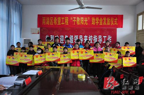 希望工程“子敬阳光”助学活动资金由湖南某公司捐赠,由湖南省青少年发展基金会、湘潭子敬阳光慈善基金会专款拨付,用于资助家庭经济困难、品学兼优的学生,自2014年启动以来,累计资助全区贫困学生473人次,共计160余万元。
