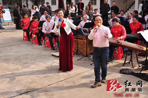 这十余个节目既有器乐合奏《喜洋洋》、古筝独奏《山丹丹开花红艳艳》、二胡独奏《洪湖人民的心愿》,也有女声合唱《噢!山沟沟》、男声独唱《洞庭渔米乡》、男声三重唱《草原上升起不落的太阳》等,更有极具湖南本土气息花鼓戏表演《补锅》、《刘海砍樵》。精彩的表演博得了老人们阵阵掌声。