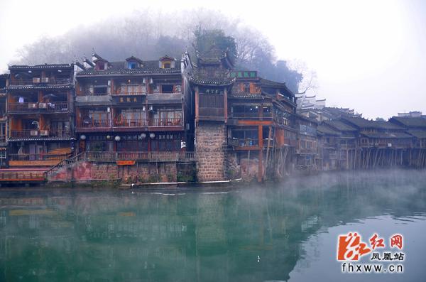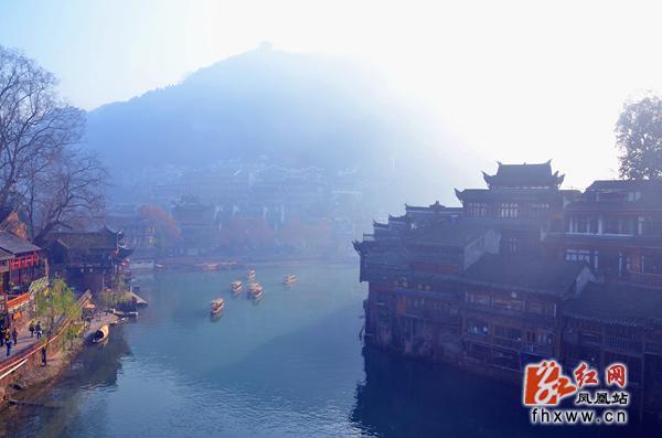 红网凤凰站1月19日讯(通讯员 刘伟)1月18日,多日阴雨后的凤凰古城旅游区,暖阳初照,薄雾飘绕,宛如一幅水墨丹青画卷。