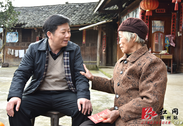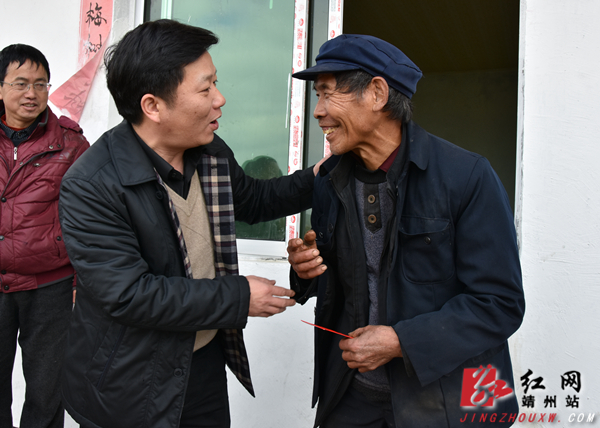 红网靖州站1月19日讯(分站记者 何嫘 通讯员 周健)1月18日,阳光明媚,暖意融融,靖州县委副书记、县长田连钊深入太阳坪乡,对困难户进行春节前走访慰问。田连钊一行首先来到诸葛村,正巧遇到低保户蒙吉成在义务打扫卫生,清理路旁垃圾。得知他自身残疾,仍坚持劳动,热心帮助邻里,田连钊连连称赞。田连钊和蒙吉成边走边聊,来到后盾单位为他新建的房屋。里里外外仔细察看后,田连钊叮嘱乡、村干部要多给予关心和支持,帮助蒙吉成一家过年前住进新房。