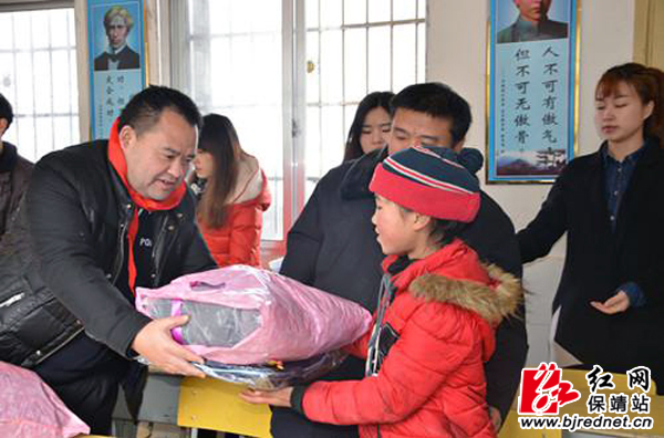 “这件棉衣我可以试一下吗?书包和文具盒是送给我的吗?”孩子们礼貌地提问。