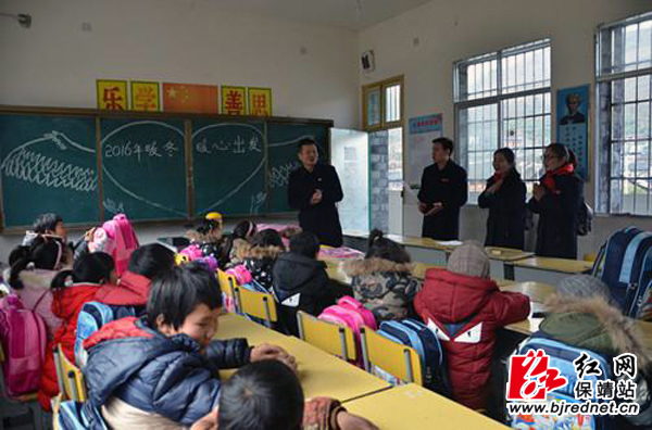1月15日,保靖县检察院青年工作委员会(以下简称青工委)的全体干警,在检察长印道波的带领下,深入扶贫联系点翁科村翁科小学开展“关爱贫困留守儿童暖心”活动。