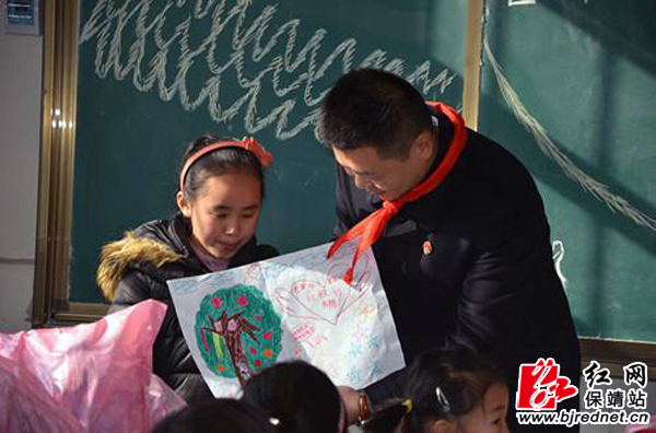 一天的活动在孩子们天真无邪的笑声中结束。临别时,一个学生代表拉着蒋巍副检察长的手说:“叔叔!麻烦您将我们一起画的这幅画带给没有来的叔叔、阿姨们。请他们放心,我们会好好学习,有您们的关心和爱护,我们不孤独、我们不怕冷”。