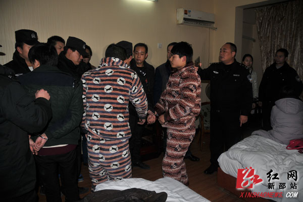红网新邵站1月22日讯(分站记者 隆清泉 通讯员 戴礼顺)2016年1月13日凌晨四点,新邵县酿溪镇大新街“智辉批发部”被数名蒙面歹徒持刀抢劫货物价值数十万元,守店人员曾某被两名蒙面歹徒打伤。接警后,新邵县公安局立即启动了重特大案件应急机制。该局抽调精干民警迅速成立了专案组,全面组织开展侦破工作。专案组民警经过一个星期的连续奋战,锁定了嫌疑人及其行踪。经过周密部署,收网行动在局长钟彪的指挥下全面铺开。