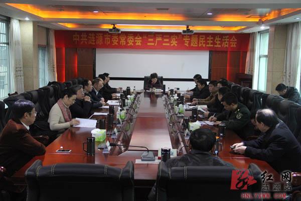 红网涟源站1月22日讯(分站记者 黄超)按照中央、省委和娄底市委的部署,经娄底市委批准同意,1月21日,涟源市委书记谢学龙在市人武部会议室主持召开市委常委会“三严三实”专题民主生活会,市委副书记、市长宋建明,市委副书记康昊宁,市人大常委会主任梅国华,市政协主席贺顺清,市委常委吕余庚、倪志铭、肖更新、谢永东、肖春、梁小兵、段德学、梁育清等出席或列席会议。娄底市纪委常委曾桂华,娄底市委组织部副处级组织员肖元意到会指导。会上,谢学龙通报了民主生活会的有关准备情况并作表态发言,康昊宁通报了2014年度民主生活会及教育实践活动后续整改工作落实情况。