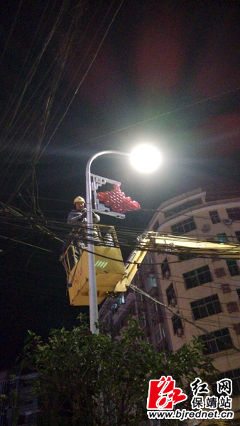红网保靖站1月26日讯(通讯员 龙术娥)“光付,递4号螺丝和灯杆上来,两个螺丝,80的灯杆。”在保靖县城万家超市路口,正在5米高处作业的林师傅往下对着同事大声喊道。1月24日晚,一台路灯车在路口内,三个技术工作人员正在高空安装中国结式样的红色挂灯。中国结式挂灯是全县推进县城亮化,提升县城品味工程项目之一。往年春节挂的红灯笼,风吹雨淋容易损坏,今年挂的中国结式样挂灯是防水防腐材料,造价虽高,但持久,相比每年更换一次的红灯笼,中国结式样挂灯可持续数年。全县投资40余万,在城区内街道安装400个中国结式挂灯,为全县人民的新年锦上添花。