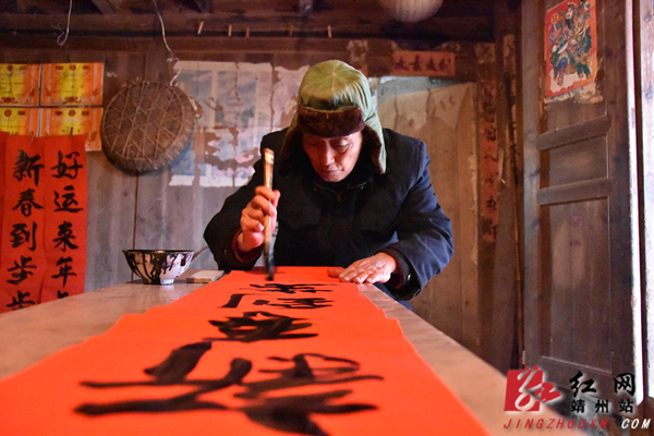 看着躺在床上的儿子,床前乖巧的孙女,杨盛海叹了口气。他打开昏暗的钨丝灯,铺开红纸,写下了“新春到步步登高”——这是他为了换钱写下的春联,也是他对新年的期许。再过两天,杨盛海就要将写好的几百付春联拿到县农业局门口或是飞山新城售卖。他希望,春联可以多卖一点,这样,一家人便可以过个好年。