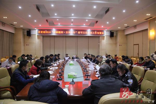 市委常委、宣传部长、副市长龚迎春指出,春节文化活动是我市民族文化、非遗文化、地域文化、群众文化、年文化的重要展示,也是促进文旅融合的重要载体。各相关部门、乡镇街道要认真筹划、精心安排好2016年“神秘湘西·吉周吉年”春节文化活动,营造年味十足的春节氛围;要加强宣传,让外地游客进一步了解活动内容和亮点,增强活动对外地游客的吸引力;要加强活动的安保维稳工作,确保全市人民过上一个欢乐祥和、安全喜庆的新春佳节。