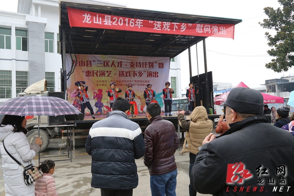 红网龙山站1月30日讯(分站记者 陈新祥 通讯员 包智帆 贾月潇)1月28日至29日,龙山县2016年文化科技卫生“三下乡”活动在茨岩塘镇和县城龙凤广场举行。1月28日,正值茨岩塘镇赶集,该镇特意将镇政府的停车坪、镇政务中心等办公场所腾出专门场地,供村民们参加活动。1月29日的活动现场设在县城龙凤广场。工作人员分成十余个现场工作组,发放科普书籍、技术手册等资料,宣讲党的十八大、十八届三中、四中、五中全会精神和习近平总书记系列重要讲话精神,开展社会主义核心价值观的专题文艺活动,宣讲法律知识,为百姓免费体检诊疗,提供健康咨询,积极宣传禁毒预防、交通安全、防火处置和应急处理等知识,详细解答大家关注的卫生、法律、消防、交通等热点问题。