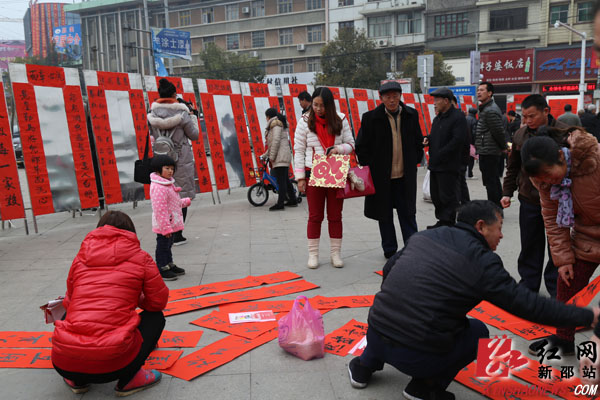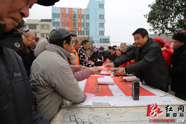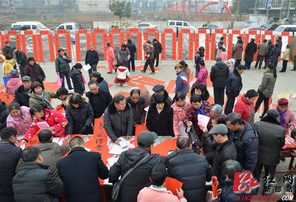 春节即将临近。为教育规劝大家“珍爱生命,远离毒品,”共同打好一场禁毒大战,有效预防相关违法犯罪活动,让大家过一个健康、快乐、祥和的新年,县禁毒协会等在城市花园开展“送春联、送福、送宣传资料”三送活动。活动当天,赠春联、送万福、发放禁毒宣传资料、鼓乐队表演和影像宣传等多种方式有序进行,共发放禁毒宣传资料12000余份,送“福”480多个。特别是由县内楹联爱好者、书法家自己撰联并书写的100幅与禁毒有关的对联,形式新颖,内容深刻,发人深省,吸引了大批市民驻足观看。