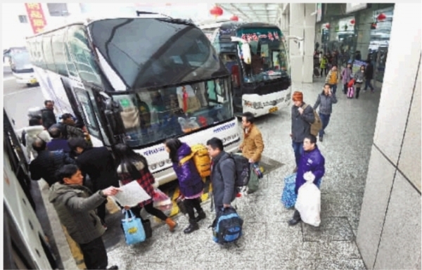2月1日上午,长沙市湘江新区交通枢纽站,旅客们排队上车。自1月24日启动春运后,客流量开始增多。从当天开始,长沙各汽车站开始迎来中短途为主的返乡高峰,湘江新区交通枢纽站近日发送旅客人数均在4万人次左右。三湘都市报记者 田超 摄影报道