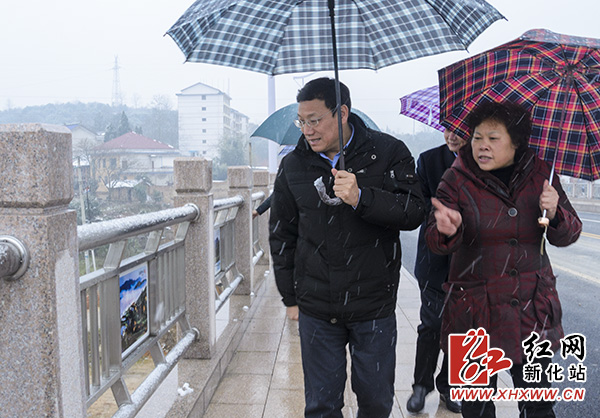 红网新化站2月3日讯(分站记者 李伊超)2月1日,娄底市委常委、组织部长、统战部长华学健轻车简从,冒着大雪来到新化汽车西站、新化三桥检查指导安全生产工作。新化县委常委、组织部长、统战部长王汪,县委常委、副县长王文红,正县级干部陈貌聪陪同检查。在汽车西站,华学健察看车站安保、行李安检和节日期间车辆发送情况。他要求一定要加强客运车辆安全例检、危险品查堵和出站登记工作,保障道路运输源头安全,同时要落实车辆动态监控措施,强化驾乘人员的安全意识,提高服务质量,保证旅客安全出行。
