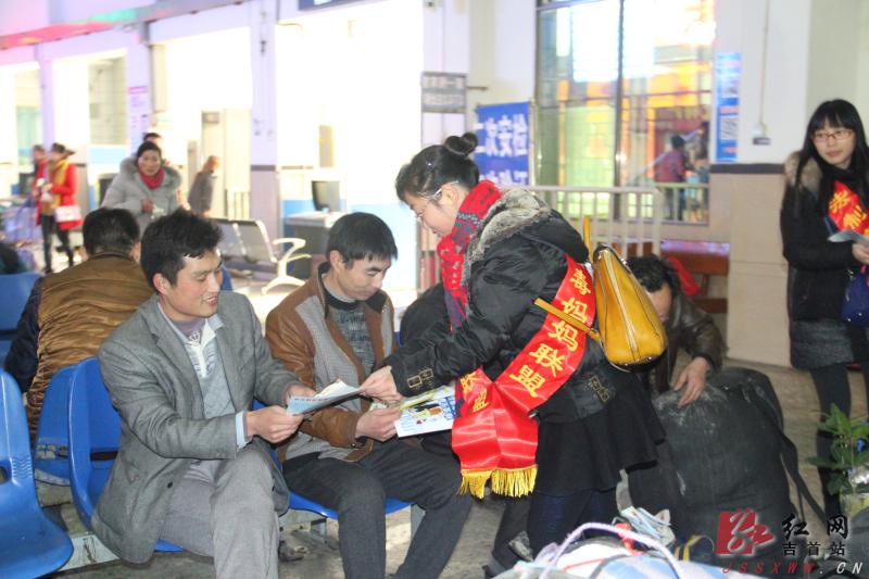 红网吉首站2月3日讯(通讯员 向迎华)2月2日,吉首市禁毒办组织相关成员单位及禁毒妈妈联盟成员、禁毒志愿者在火车站和汽车北站开展禁毒宣传。本次禁毒宣传活动,利用外出务工人员和青年学生集中返乡返城以及老百姓探亲、旅游的有利契机,采用发放宣传单、摆放宣传展板及悬挂横幅等形式在火车站及汽车站的售票厅、候车室及车站出口向旅客们发放禁毒宣传资料,号召广大市民积极了解毒品的危害,参与并带动身边的人参与禁毒工作,共同携手,全民禁毒。
