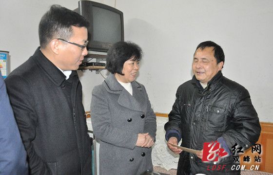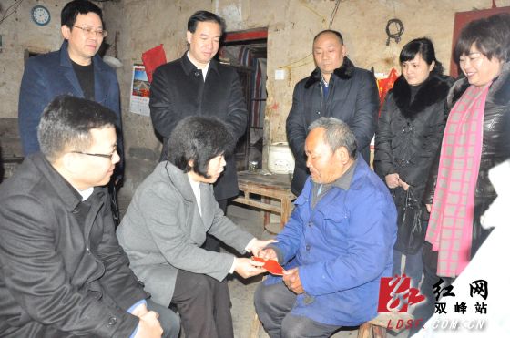 红网双峰站2月4日讯(分站记者 彭牡)2月4日,娄底市委常委、宣传部长伍美华到双峰走访慰问了部分困难群众、基层老党员、敬老院和特困企业及职工、劳动模范、道德模范等,把党和政府的温暖送到老百姓的心坎上。县领导吴德华、杨维、李铁雄、阳雄绪、邹学耀、彭云辉参加慰问或参加春节期间工作部署会议。伍美华一行首先来到走马街镇秧冲村低保户王德轩家里,王德轩今年70岁,患有帕金森综合症,其妻心脏装有支架,儿子患精神病,现全家住在土木结构的危房中。伍美华送上了慰问金,并劝说王德轩年后去医院接受治疗,各级党委政府将共同努力,承担所需医疗费用,同时鼓励他要坚强面对生活,树立克服困难的信心。