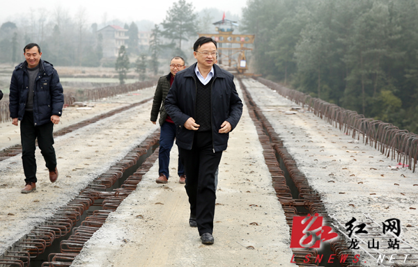 周云驱车查看了公路建设沿线,并步行到牛鼻子洞大桥、丢草坡大桥等节点工程查看,听取了施工进度情况汇报。