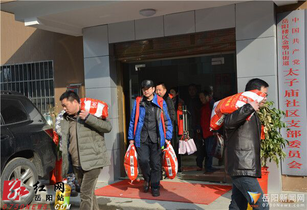 上午9时,记者随来自各社会阶层的爱心人士带着猴年春节的祝福,前往岳阳楼区太子庙社区,为社区的空巢老人们送上大家准备的含有食用油、大米、木耳、糕点等物资的“爱心温暖包”13个。