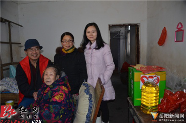 98岁的空巢老人杨茂香就是这次志愿者之家援助的对象之一。作为年龄最大的扶助对象,老人出一趟门十分不容易,于是志愿者们带着准备好的物资送往杨娭毑家中。老人丈夫去世,膝下无一子女,生活起居很成问题,附近邻居杨大姐得知老人的情况后主动请缨来照顾她。其实杨大姐也是困难户,丈夫是聋哑人,生活来源全靠社区的救济金。但已经50多岁的她就是这样坚持干了好几年,早晨过来热炉子,晚上回去关炉子,一日三餐,烧水洗澡,已经完全把老人当成自己的亲人了。岳阳志愿者“老猫”看到杨大姐的这番举动十分感动,感慨道:“现如今的社会想找到一个像你这样热心肠的人已经很难了,我们志愿者之家真的非常欢迎你加入!”