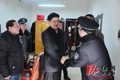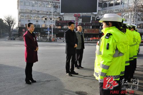 离过年只有一天,在举国欢度佳节的时候,执勤的交通民警仍将坚守岗位,为老百姓出行提供保障。何锋对他们十分关心,在一大桥路口警务站,何锋与执勤交警亲切握手,他说:“一年之中你们是最忙、最辛苦的,特别是在万家团圆之际仍要坚守岗位,希望你们今后继续发扬不怕苦、不怕累、爱岗敬业的精神,让城区的交通平安、有序。”