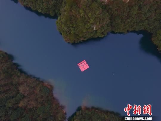 宝峰湖上拼出的“福”字为游客送福。 向韬 摄