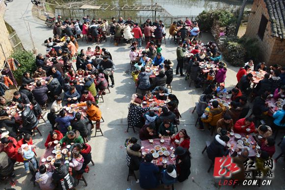 金塘等4个村民组原是从一个大组分开的,总人数有350余人。4个组在外经商的生意人和务工的年轻人多,去年建起了一个微信群。农历十二月初,该组的热心人士龙建国提议群员们筹钱为4个组的父老乡亲们办个热热闹闹的迎春团聚会,改变以往仅年轻人会餐娱乐的团聚习俗,邀请所有老人、小孩全部参加,立马得到了大家的积极响应。