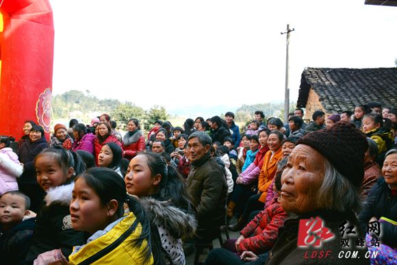 红网双峰站2月7日讯(分站记者 龚闯)2月6日,双峰县荷叶镇金鱼村一片热闹欢腾,该村金塘、邓家、前进、金星4个村民组的群众聚集一堂,举办迎新欢聚活动。老人、小孩、青年,有的唱歌,有的跳舞,有的唱起戏曲,节目一个接一个上演,掌声响过不停。“这是改革开放后我村头一次这么热闹的过年活动。”该村支部书记介绍说。而这个活动的开展,却是通过最新潮的网上众筹搞起来的。