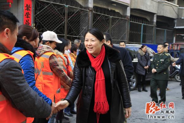 “环卫工人是城市的美容师,凤凰古城的干净整洁离不你们的辛勤努力。大家辛苦了,给大家拜年了!”在县环卫局,时荣芬一行向在一线值班的环卫工人送上了问候与祝福,并充分肯定了环卫工人不怕脏、不怕累,放弃与家人团聚,始终坚守在一线岗位的奉献精神,希望环卫工人们再接再厉,继续发扬“宁愿一人脏,换来万人洁”的环卫精神,为建设中国最美丽小城作出更大的贡献。