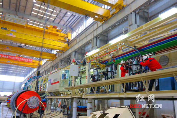 铁建重工生产车间里,工人们正抓紧组装产品。曾诗怡摄