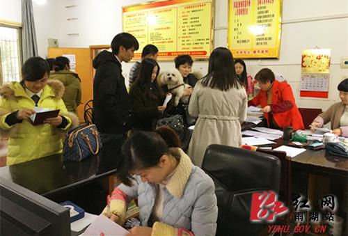 红网雨湖站2月15日讯(分站记者 谢岳峰)除了浪漫的鲜花和巧克力,很多有情人会选择在情人节当天去婚姻登记处办理结婚登记手续。今天既是节后第一个工作日,又是西方的情人节,选择结婚登记的人数肯定不少,记者从湘潭市雨湖区婚姻登记处了解到,工作人员做好了一切准备,为新人做好服务。猴年春节加上情人节,渴望早日找到幸福归宿的人们和意中人一起登记结婚,领到幸福的“红本本”,无疑是让春节喜上加喜的超级礼物。当天上午10时,我们在雨湖区婚姻登记处大厅内看到,虽然是情人节,但前来领证的新人并不多。相识相恋三年的刘先生和蔡女士选择在今天来到雨湖区婚姻登记处办理登记,为他们的爱情长跑画上一个圆满的句号。“我觉得彼此相爱在那一天领取结婚证都不重要,重要的是两个人好好在一起。”虽然刘先生对领证的日子并没有讲究,但他的妻子蔡女士并不这样认为。蔡女士说,对于女人来说,领证结婚是一件神圣的日子,当然希望更有寓意。