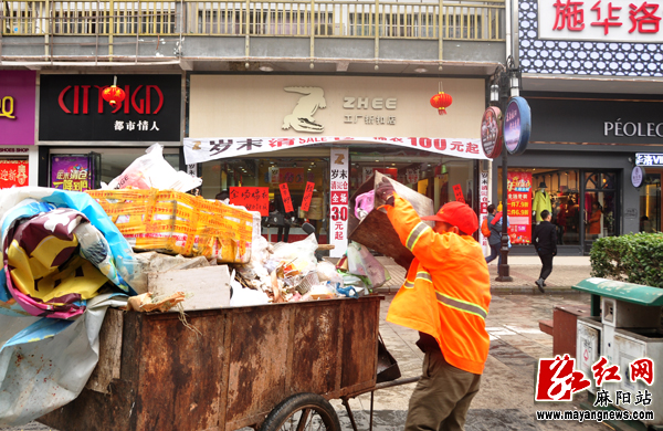 当天下午,记者来到了麻阳县锦江广场商业步行街,看到春节期间搭建的临时商业摊位已经全部拆除,环卫工人正在忙碌地打扫卫生、装运垃圾。“我们从今天中午1点开始忙起的,过年的这几天我们在广场的环卫组有10人,工作量是平时的两倍。”环卫工人郑明晓对记者说道。他表示,今天的工作虽然累,但看到步行街又重新变得干净整洁、宽敞有序,心里很高兴和自豪。