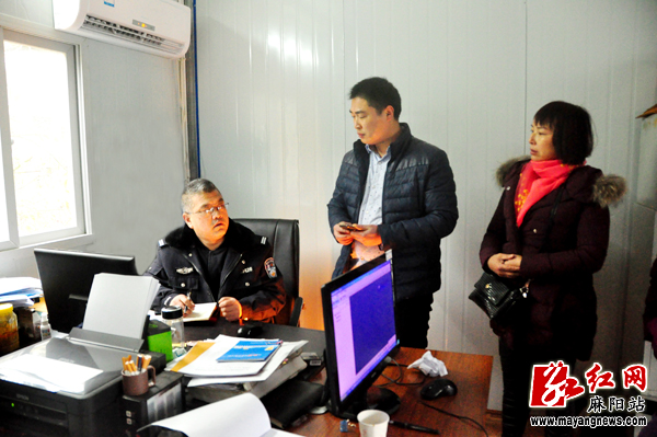 麻阳县交警大队事故处理中心内,该中心负责人正耐心向市民提供政策法规上的帮助