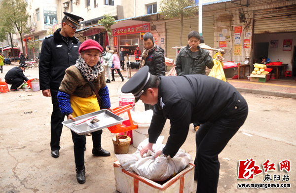 随后,记者来到了麻阳县富州南路到城南市场入口处路段,看到城管队员们正在执法。